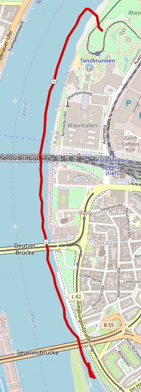Streckenplan mit Karte und Beschreibung: Strecke Köln Triathlon