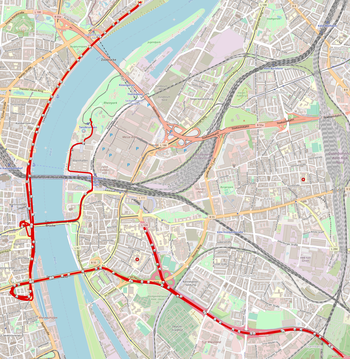 Die Strecke führt u.a. durch die Innenstadt von Köln.