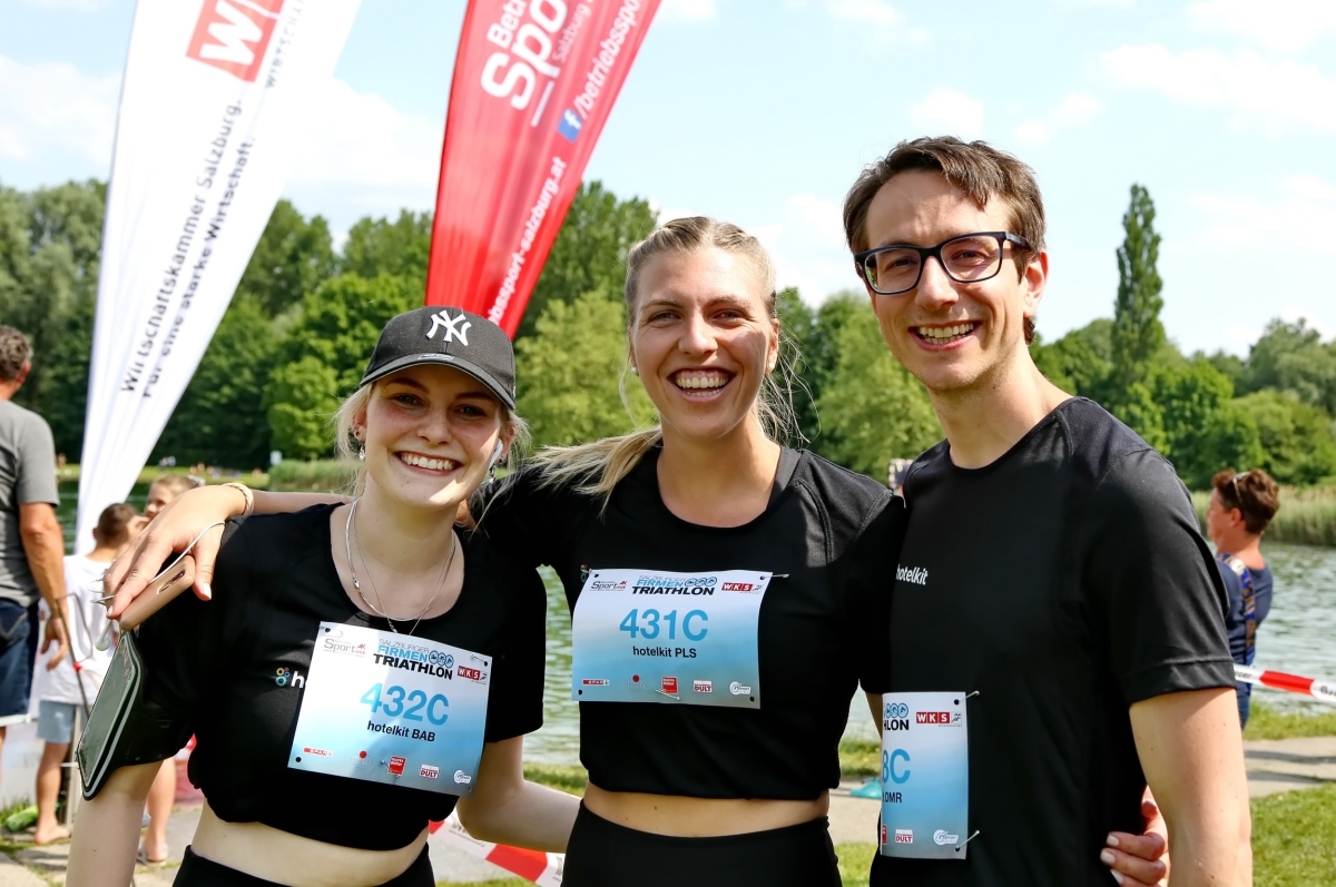 Der Salzburger Firmen Triathlon ist bekannt für seine entspannte und lockere Atmosphäre, hier stehen Teamgeist und Spaß an oberster Stelle! Zusammen mit den Arbeitskollegen Schwimmen, Radfahren, Laufen und den sportlichen Tag bei der Siegerehrung im Dultstadl ausklingen lassen. Beim Salzburger Firmen Triathlon sind nur ganz kurze Distanzen zu bewältigen, einfach aus dem Grund, dass alle mitmachen können! Jeder kann dabei sein - einfache Badebekleidung, Mountainbike oder Cityrad (inkl. Helm) und Laufschuhe reichen völlig aus.