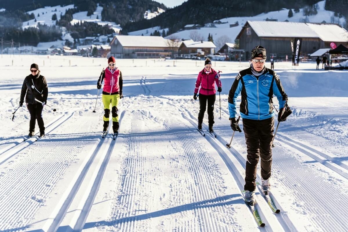 Anfängerinnen beginnen im klassischen Stil auf einem kurzen Rundkurs im Ort und dürfen am zweiten Tag auch gerne in die Skating Technik schnuppern. Fortgeschrittene Langläuferinnen feilen mit den Profis der schmalen Bretter klassisch oder im Skating Schritt an Können und Kondition. Auf über 70 km Loipen in unterschiedlichen Schwierigkeitsgraden zwischen Hittisau und Balderschwang im Allgäu kommt frau, wenn sie will, an (ihre) Grenzen und darüber hinaus.